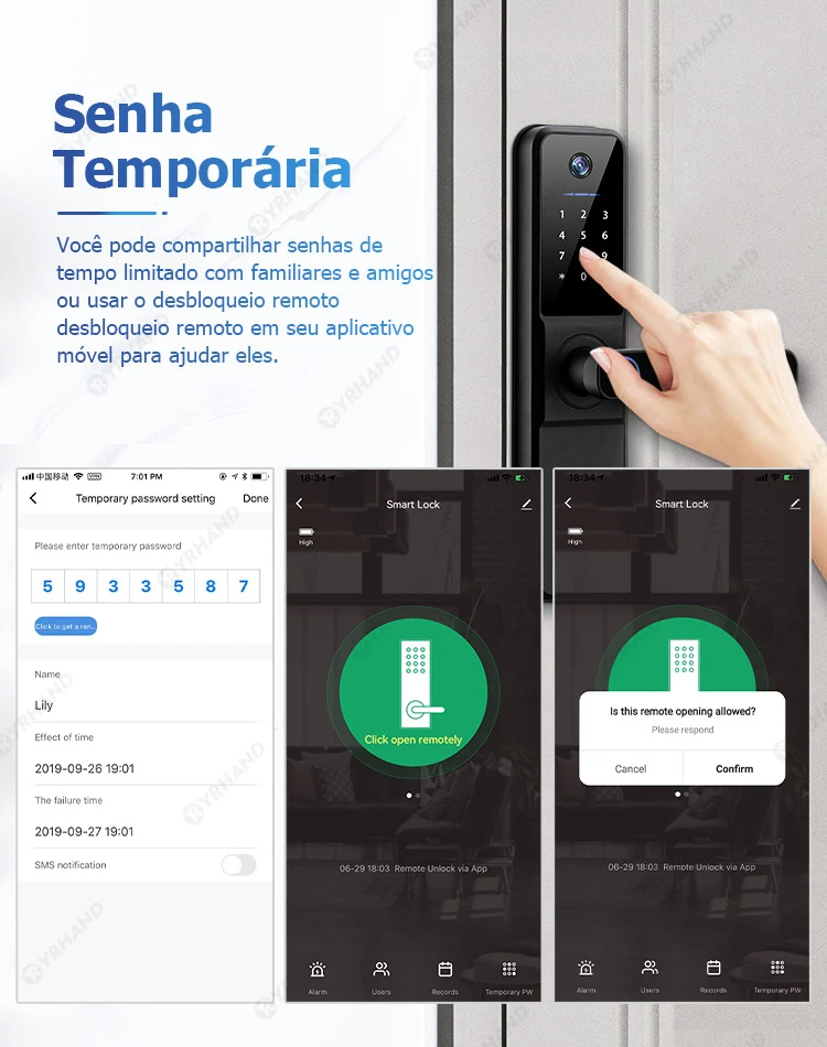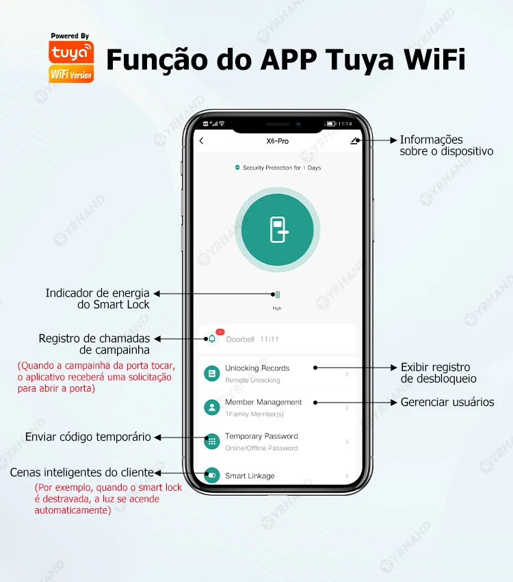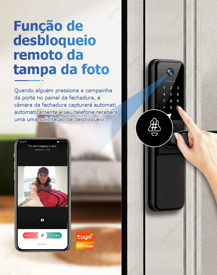 Quando um campainha é acionada, um Fechadura envia instantaneamente uma foto do visitante para o seu celular através do aplicativo TUYA+ e você pode liberar o acesso onde está!É ainda mais segurança para o seu lar.